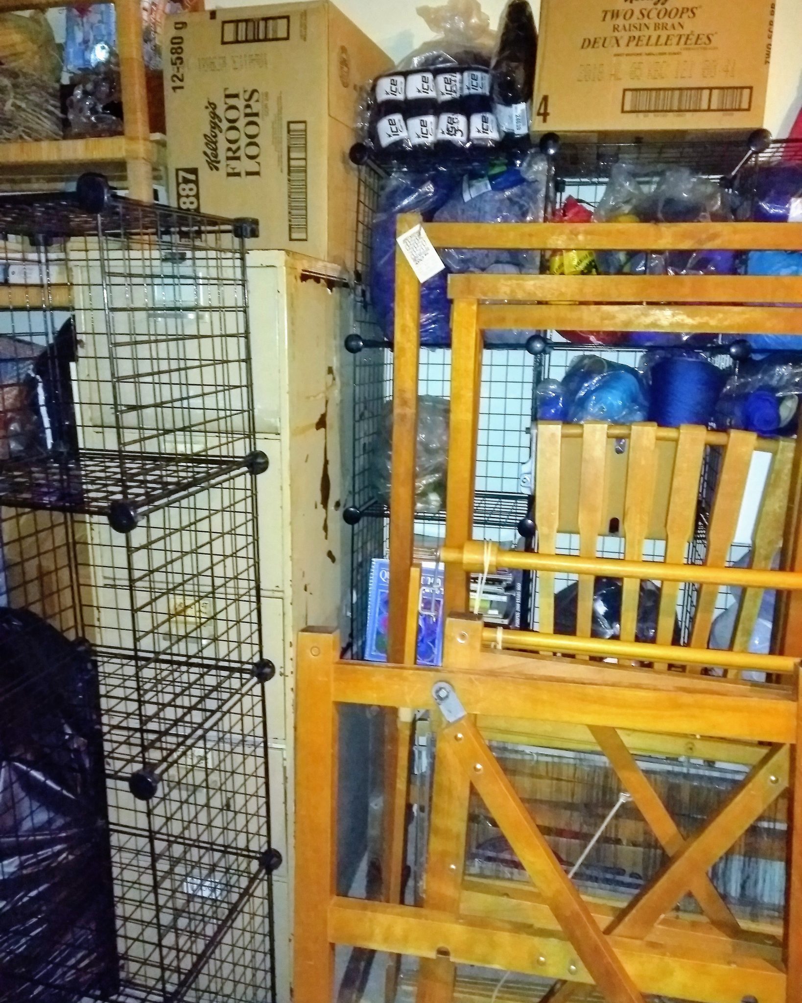 Time for a reno. Packing up all my yarn and basketry stuff and all those shells with holes in them and skate egg cases and driftwood, pine needles, lotus seed pods, felting supplies, etc., was quite a job. John took apart several looms.